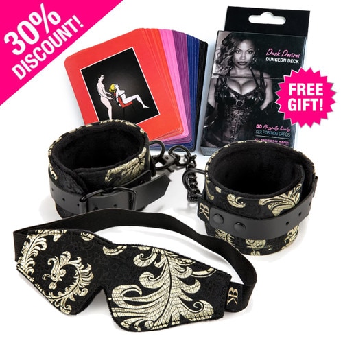 Enjoy a little bondage on your next Date Night and get wild with this gift set, featuring items from our luxurious Dark Desires Collection, and a FREE pack of our Dungeon Deck of 50 playfully kinky sex positions to explore!
