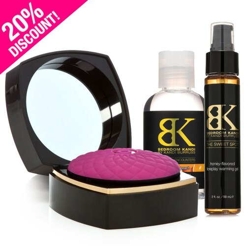 Featuring our MAKE ME OVER compact massager, perfect for massage and vibrating caresses; our DELICIOUS ENCOUNTERS lubricant in Tangerine-Peach, so you and your partner can combine touch and taste; and THE SWEET SPOT warming massage gel, for tingly warming massage play.